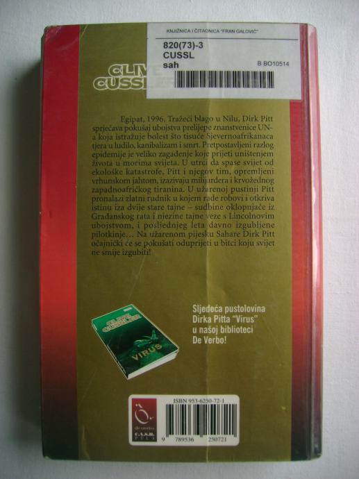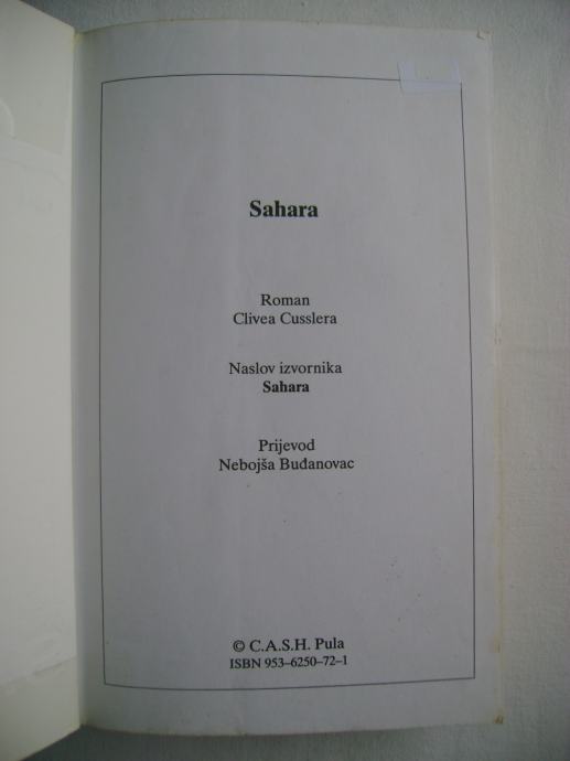 Clive Cussler - Sahara - izdavač C.A.S.H., Pula 2004. godine, 13 x 20 cm, meki uvez, 576 stranica.