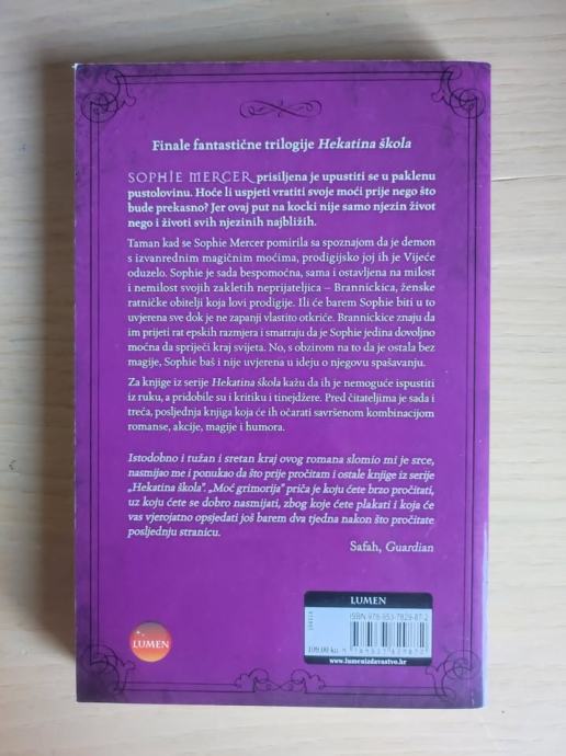 Sadržaj: Sophie Mercer otkrila je da je vještica. Kad Sophie zbog nezgode privuče previše pozornosti zbog čarolije na školskoj zabavi, otac je kažnjava. Šalje je u Hekatinu školu – popravni dom za neposlušne vampire, vukodlake, vještice i vile te ostale metamorfe. Njezinu iznenađenju nema kraja kad shvati da joj je cimerica vampirica te da se fatalno zaljubila u mladog vješca. Oko Sophie počinju se plesti tajne od kojih se ledi krv u žilama, a ona sama mora se suočiti s najvećom prijetnjom: drevnim tajnim društvom koje je želi uništiti...