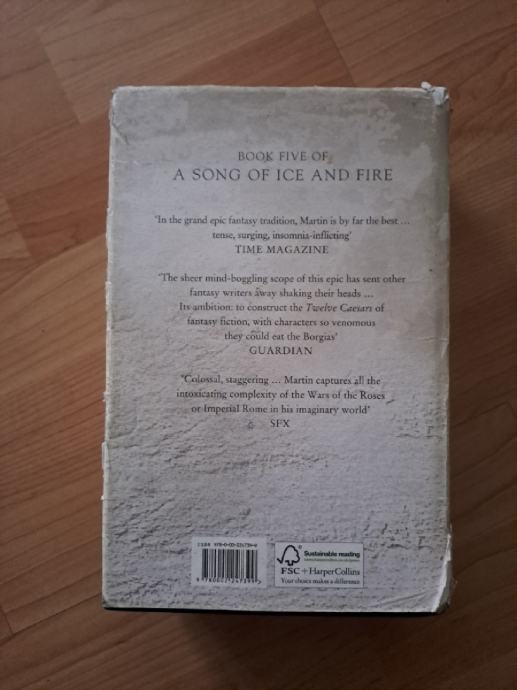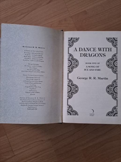 Prodajem knjigu A Dance with Dragons izdavača Harper Collins, autora George R.R. Martina. Tvrdi uvez na engleskom jeziku.
