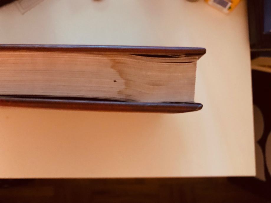 Po gornjem desnom kutu sadržaja knjige je prolivena voda ali stranice nisu zaljepljene već krajevi valoviti.