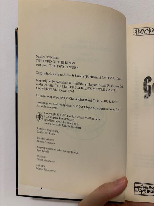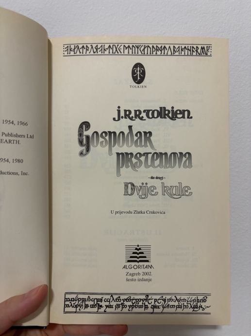 Prodajem jako dobro ocuvanu knjigu iz trilogije Gospodar prstenova, drugi dio trilogije: Dvije kule. Sesto izdanje, Algoritam 2002.
