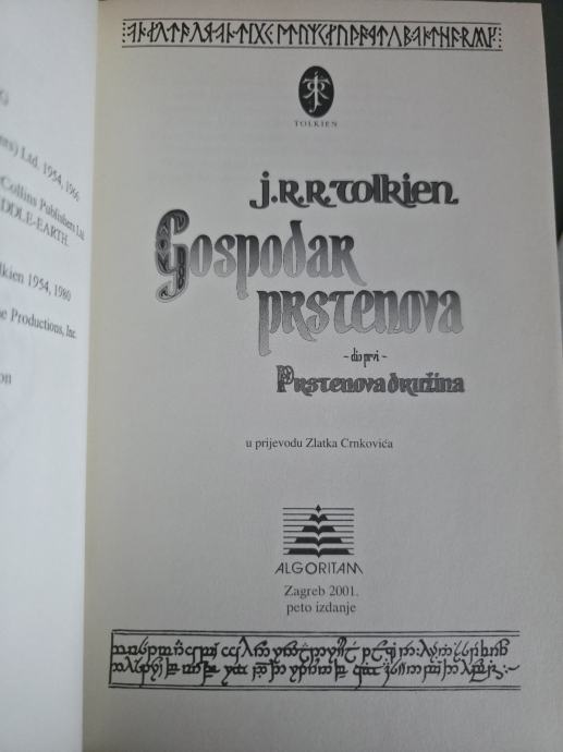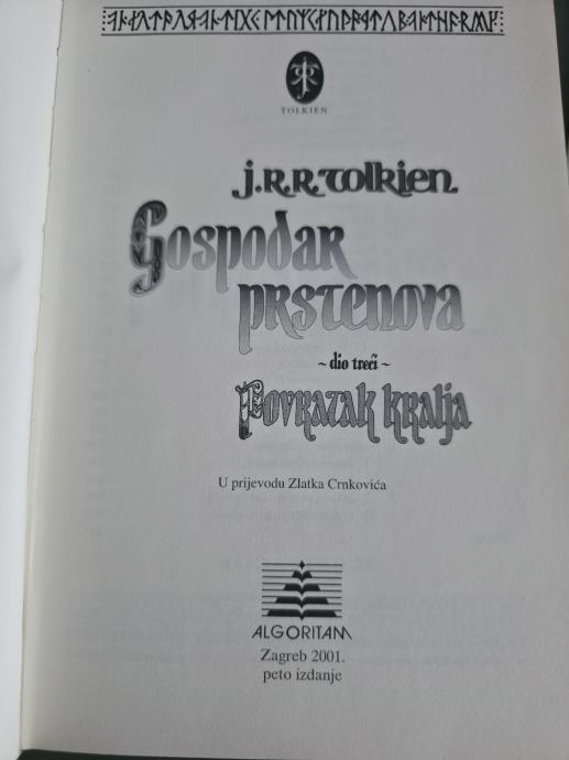 Prodajem komplet trilogije J. R. R. Tolkiena – Gospodar prstenova u izdanju Algoritam, tvrdi uvez, 5. izdanje: