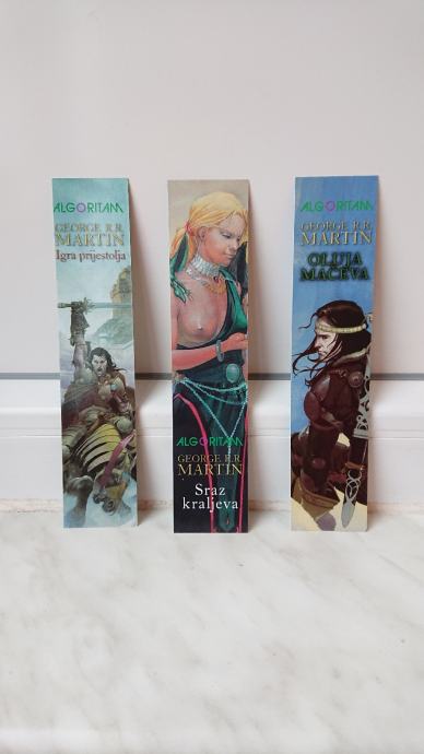 Bookmarkeri za knjige Igra prijestolja, Sraz kraljeva i Oluja mačeva, G.R. R. Martin - 3 komada (prve dvije slike) - cijena 5,50 EUR.