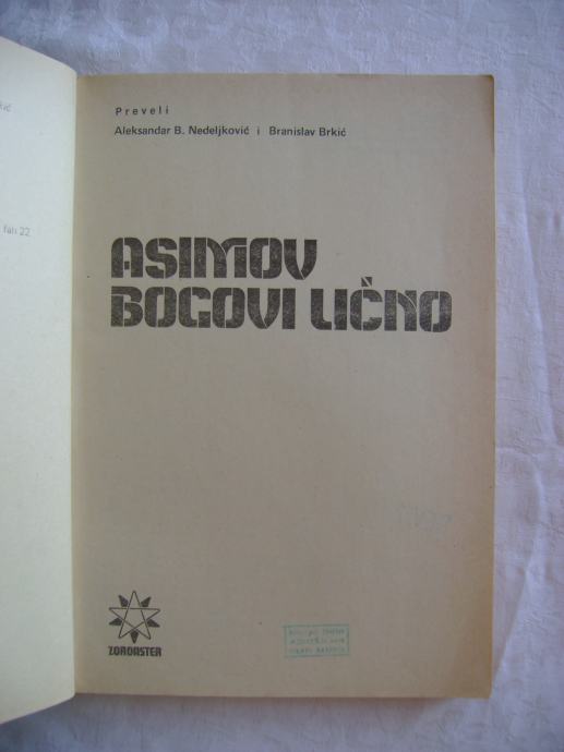 Isaac Asimov - Bogovi lično - izdavač Zoroaster, Beograd 1987. godine, 14 x 20 cm, meki uvez, 185 stranica, naslovnicu ilustrirao Igor Kordej.