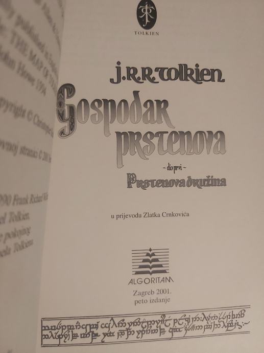 Prvi dio trilogije Gospodar prstenova, Prstenova družina, 5. izdanje Algoritam, tvrdi uvez, stanje vidljivo na fotografijama. Bez posveta i oštećenja.