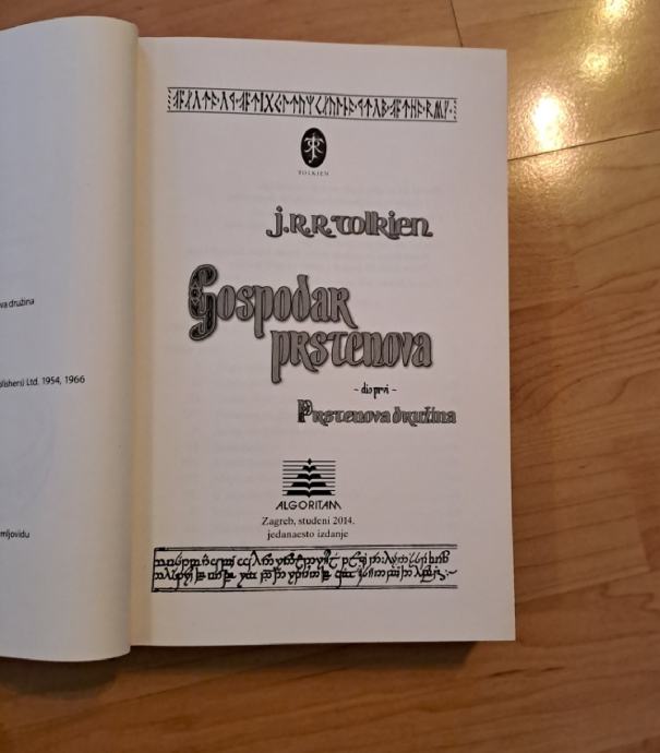 Gospodar prstenova: Prstenova družina, prvi dio slavne Tolkienove trilogije, Algoritam 2014 godina, 11. izdanje, tvrdi uvez, ilustracije Igor Kordej.