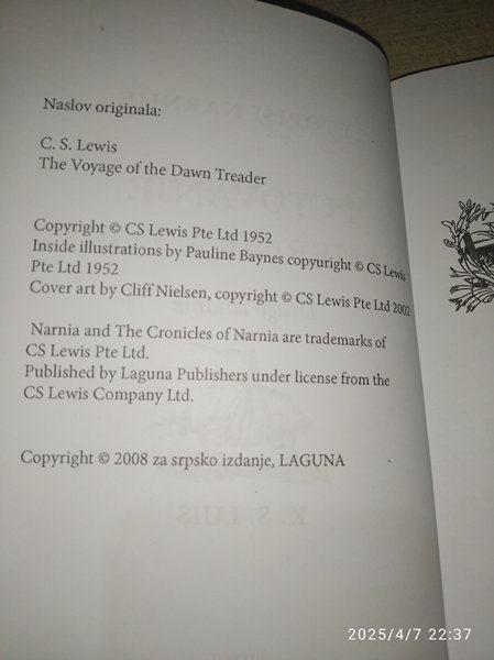 Ovo je peta pustolovina uzbudljivih Letopisa Narnije.