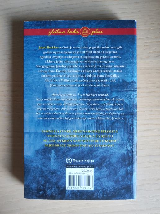 Sadržaj: Jakob Reckless počinio je samo jednu pogrešku nakon mnogih godina opreza: njegov ga je brat Will slijedio u svijet iza ogledala. Svijet je to u kojemu su najmračnije priče stvarnost, a kletva jedne vile postaje zametkom kamenog mesa. Mnogo godina Jakob je pohodio taj svijet koji mu je postao utočište i drugi dom. Tamo je, kao lovac na blago za cara i caricu, tražio čarobne predmete koje su skrivale duboke šume i brežuljci. Ali, kako se Willova koža počela preobražavati u žad, Jakob mora pronaći lijek kako bi spasio brata.