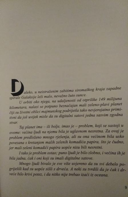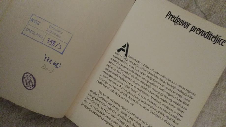 Prodajem knjigu „Vodič kroz Galaksiju za autostopere", drugo hrvatsko izdanje kultnog djela znanstvene fantastike, prijevod djela „The hitchhiker's guide to the Galaxy", autor Douglas Adams,