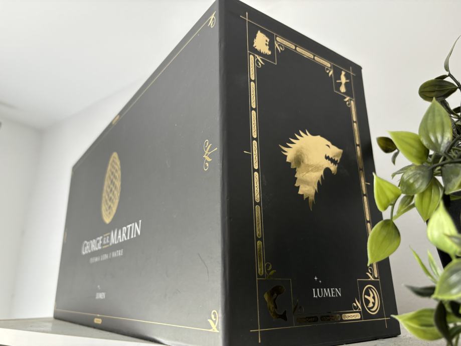 Knjige su nove i maksimalno očuvane (neke nisu ni čitane). Knjiga Sraz Kraljeva je pretrpjela manji udarac prilikom slaganja knjiga u kutiju, ali ništa značajno (vidljivo na slikama).