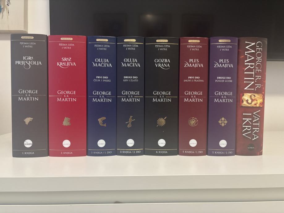 Prodajem sedmoknjižje sage Pjesma Leda i Vatre koje je napisao George R.R. Martin te knjigu Vatra i Krv u kompletu.