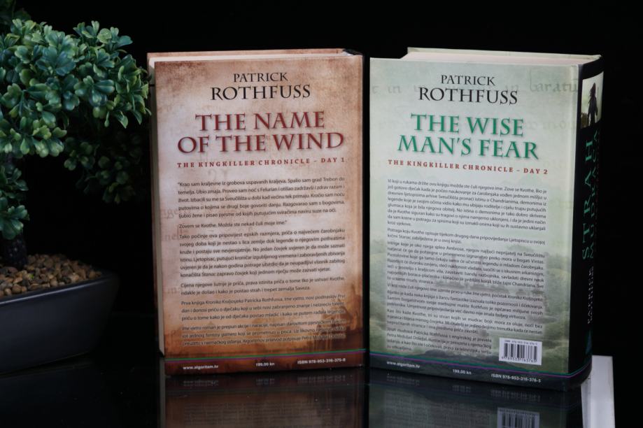 Prodajem komplet knjiga Kronike kraljosjeka (The Kingkiller Chronicle) u izdanju Algoritma, tvrdi uvez. Ime Vjetra jednom je pročitano, dok Strah mudraca nije čitan. Knjige su u odličnom stanju. Knjige su bez posvete.