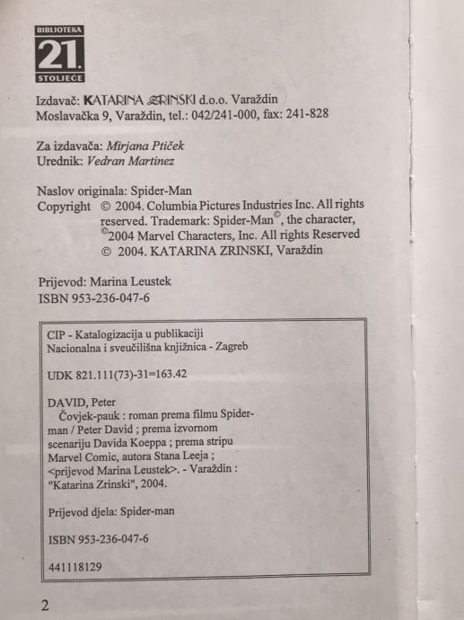 Spider-man Čovjek-pauk / roman prema filmu / 330 str iz 2004.