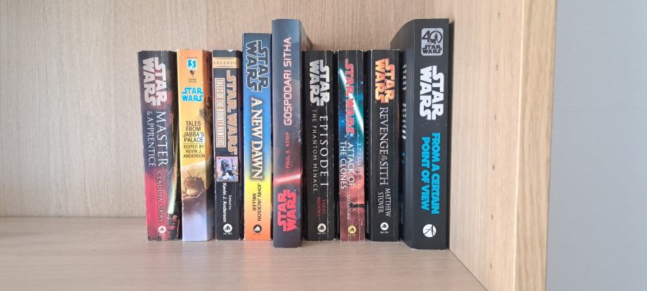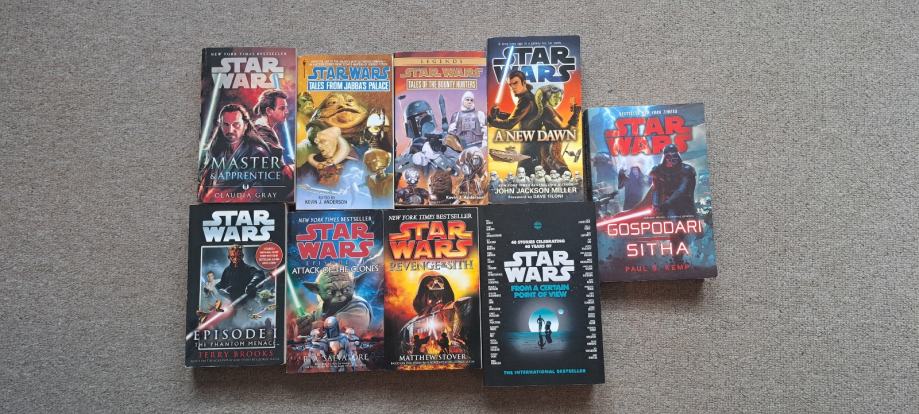 Prodajem 9 star wars knjiga ukupno 70 eura. 8 na engleskom 1 na hrvatskom. Ako imate dodatnih pitanja slobodno se javite.