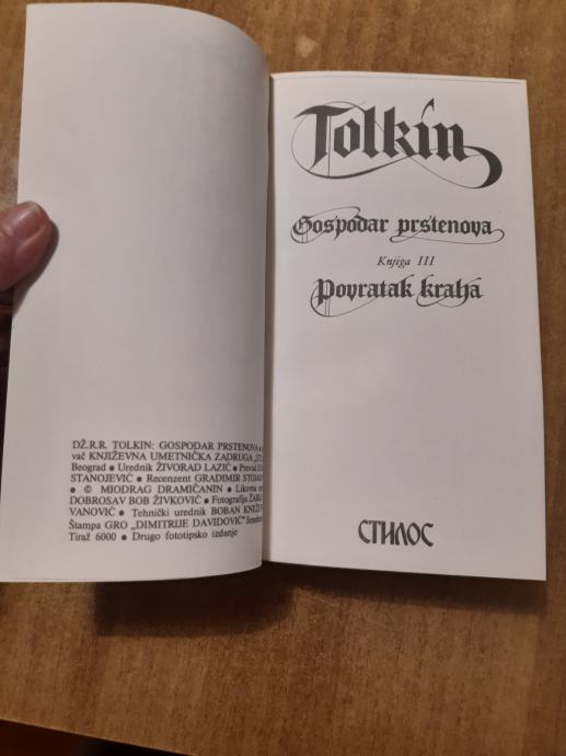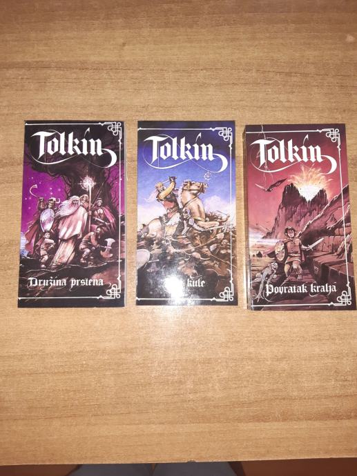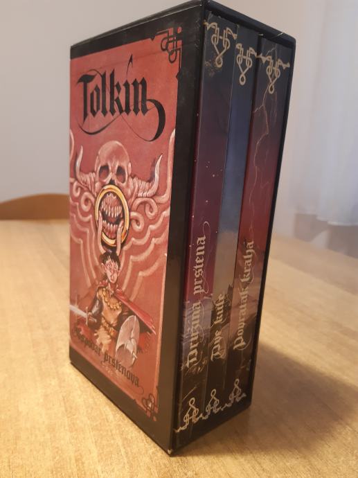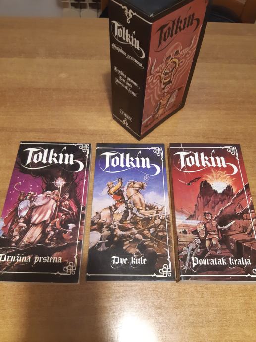Prodajem trilogiju Gospodar prstenova izdavačke kuće Stilos, tiskanu 80-tih godina (2. izdanje). Sadrži tri knjige mekog uveza u tvrdoj kartonskoj kutiji i poster sa zemljiovidom. Knjige su u odličnom stanju, bez oštećenja, nekorištene.