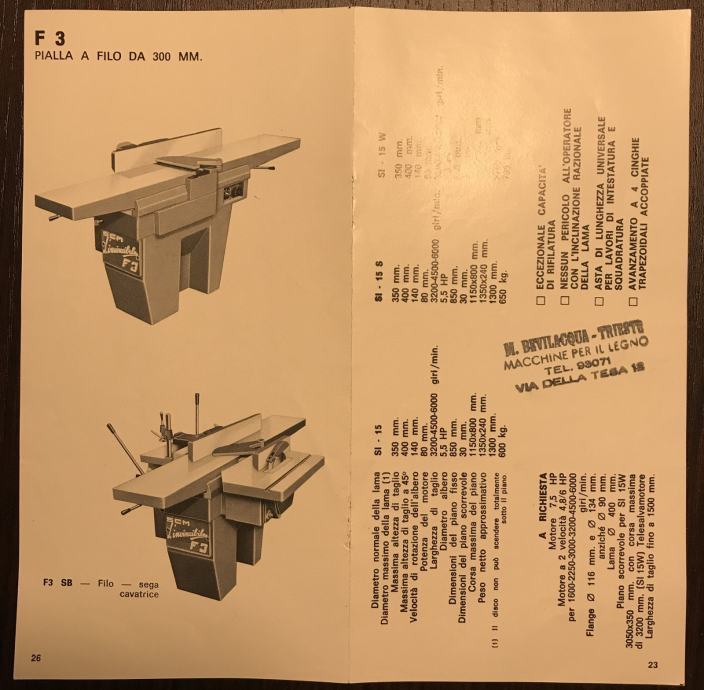 3talijanska prospekta (djelom na slo.jeziku) o blanjama za obradu drva
