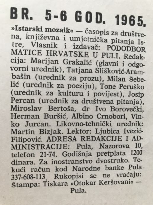 Istarski mozaik 5-6 1965. časop.za društv.knjiž. i umjet.pitanja Istre