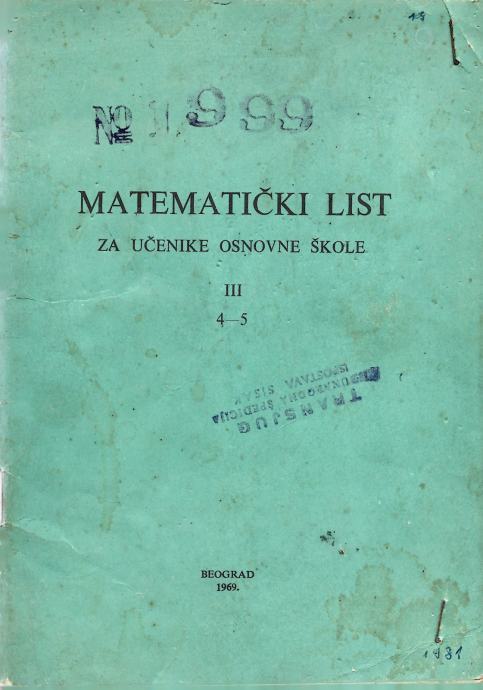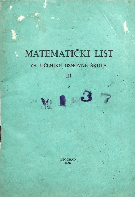 Stara izdanja Matematičkog lista za učenike osnovnih škola; izdavač: Savez društava matematičara, fizičara i astronoma Jugoslavije.