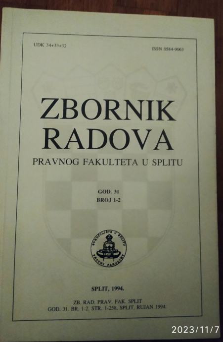Zbornik radova Pravnog fakulteta u Splitu 31/1-2 1994