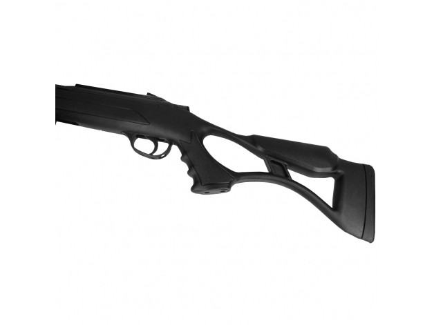 Polimerni kundak s rupom za palac ima udoban pištoljski rukohvat i prostor za palac, povećavajući udobnost i kontrolu nad oružjem.