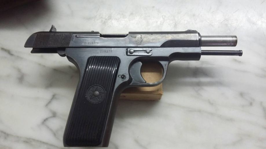 Imaocu nabavne dozvole prodajem očuvan i ispravan pištolj TT 7,62 . Pištolj se prodaje sa 2 kom. spremnika i kožnom futrolom- vidi slike. U cijenu pištolja ide cca -300 komada streljiva. Samo streljivo vrijedi preko 300 kuna tako da pistolj placate samo 600 kuna. Cijena je fiksna i streljivo ne prodajem zasebno. NE ZOVITE AKO NEMATE NABAVNU!!!!..hvala!