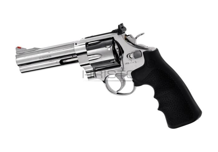 Revolver ima metalno kućište i precizno izrađenu cijev duljine 5 inča, čime se osigurava stabilnost i dobra preciznost. Rukohvat je ergonomski oblikovan za siguran hvat, dok realističan sustav okidanja i rotirajući bubanj doprinose realističnom iskustvu pucanja.