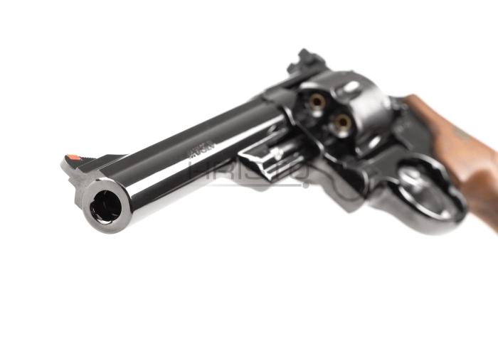 Zahvaljujući duljini cijevi od 6.5 inča, revolver pruža poboljšanu preciznost, a dvostruko djelovanje okidača i rotirajući bubanj s 6 metaka nude realistično iskustvo gađanja. Teksturirana ručka omogućuje siguran hvat, a težina i balans doprinose autentičnom osjećaju u ruci. Ovaj model je idealan za kolekcionare, rekreativce i ljubitelje klasičnog američkog dizajna.