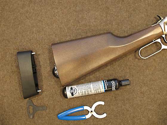 Zračna verzija Winchester Lever Action puške koristi 88 gramsku CO2 ampula koja se umeće u kundak puške.