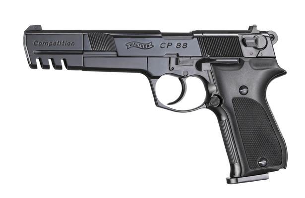 Walther CP88 COMPETITION Zračni Pištolj ispaljuje dijabole i napaja se CO₂ ampulom od 12 grama.