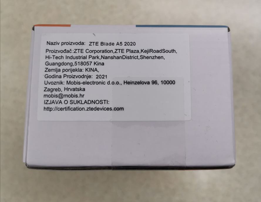 Prodajem novi, ne korišteni, original zapakirani mobitel ZTE BLADE A5 2020.