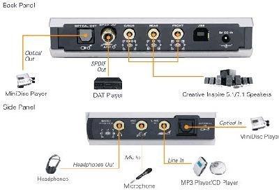 Uz analogne aux i mic ulaze kartica ima i SPDIF opticki ulaz i Dolby Digital 5.1 procesor s 5.1 izlazima.
