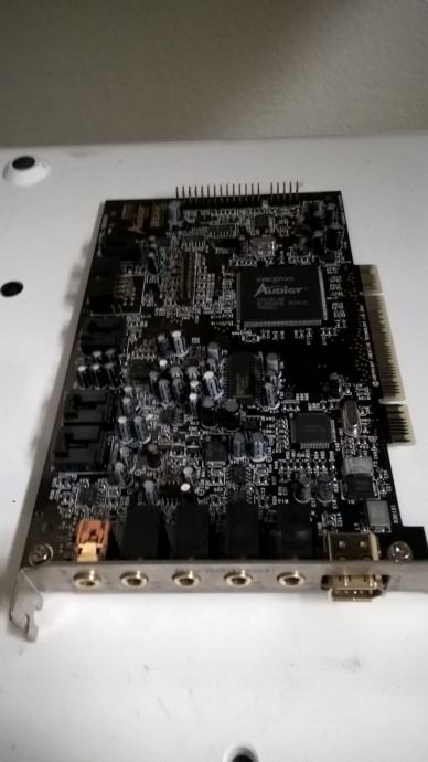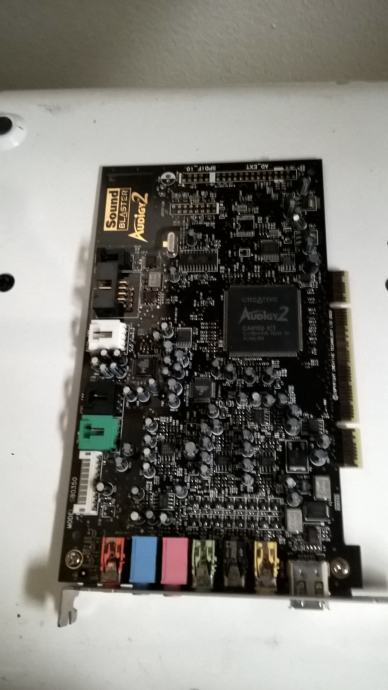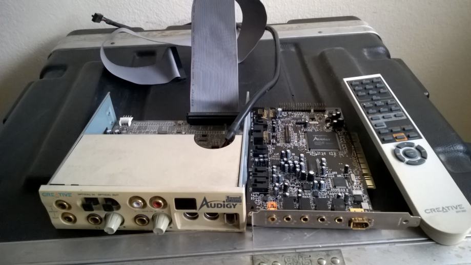 Prodaje se retro gejmerska zvučna kartica jedna od prvih koja se pojavila na tržištu. Ima front box s konektorima, sve kablove i daljinski upravljač. Ima i midi ulaze za glazbenu produkciju. Na poklon dajem Audigy 2 sa slike.