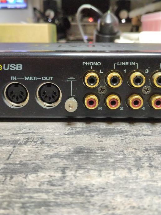 malo korištena, ispravna, odlična, 1x phono, 2x line in, 3x line out, MIDI in i out, digital i/o, slušalice, mic+phantom