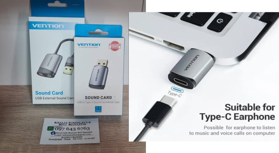 USB ZVUČNA KARTICA USB 2.0 (MUŠKI) NA TIP C (ŽENSKI) / NOVO