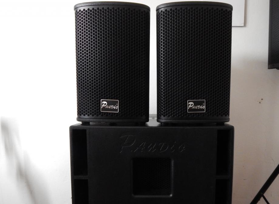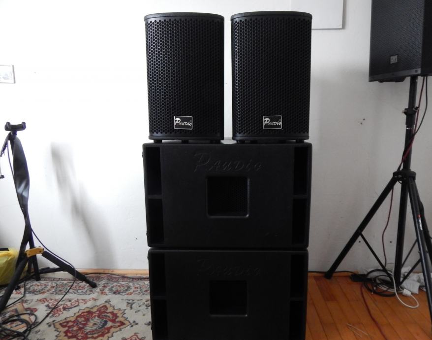 Aktivni razglas - zvučne kutije sateliti P.Audio ICE 500 2 komada i basovi P.AUDIO ICE 1000 2 komada. Zvučnici kupljeni novi prije godinu dana. Malo korišteni i izuzetno sačuvani. Prodaja zbog prestanka rada benda.