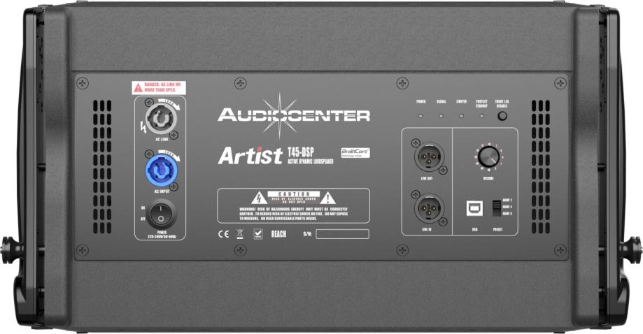Artist T45-DSP active DSP-controlled line array adopts front bass reflex design and elaborate driver layout, the cabinet is very small and lightweight. With innovative ETE™ wave guide technology, T45-DSP delivers supreme sound performance that no need too much correction while tuning. T45-DSP is very compact, but with very high SPL and long throw.