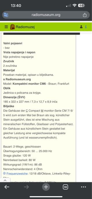 Prodajem zvučnike Braun CM 6 ads u odličnom stanju iznenađujuće zvuk ovih malih monitora kvaliteta izrade težina jednog blizu 9 kg