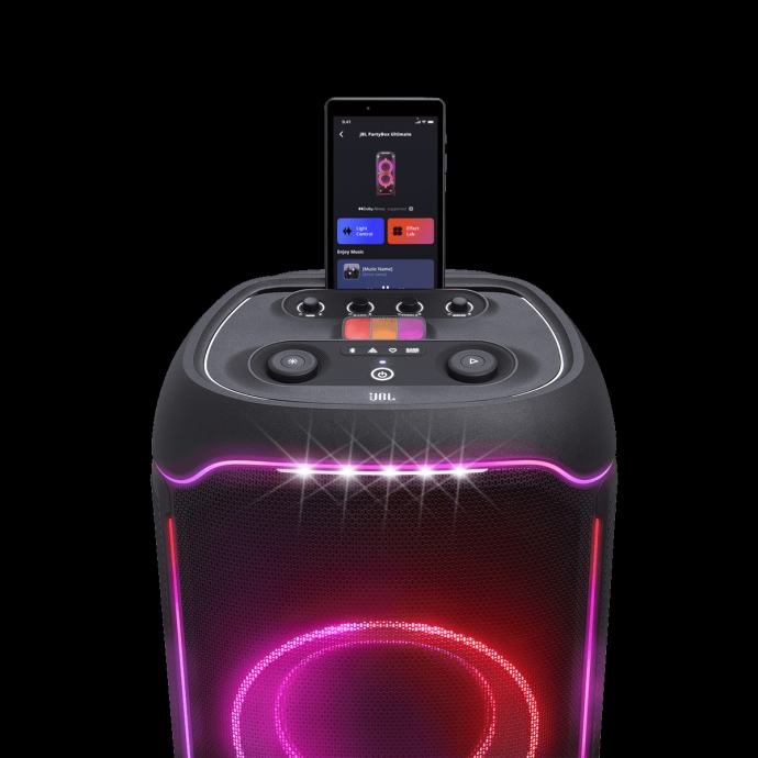Uz JBL One aplikaciju, lakše je nego ikad kontrolirati glazbu, prilagoditi postavke EQ-a i prilagoditi boje i uzorke svjetlosnog showa za savršenu atmosferu zabave.
