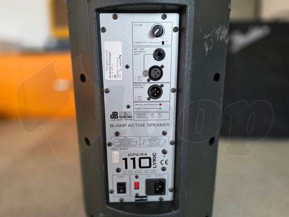 aktivna zvučna kutija dB Technologies Opera Lyric 110; zvučnik 10″ + 1" tweeter, snaga 140W + 40W Bi-amping RMS Class-H, SPL 117 dB, Frequency response 70Hz – 20 KHz.