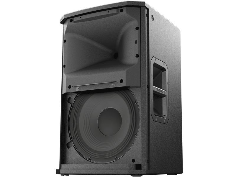 12-inch LF SMX woofer. 1.25-inch HF titanium compression driver. 2000 W Class-D power amplifier with integrated FIR-Drive DSP.