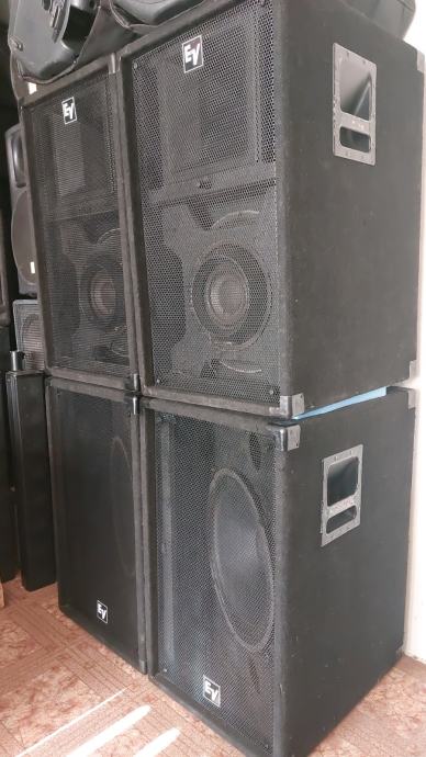 Visoko profesionalne zvučne kutije EV T351, 3way, pasive 400\800w ili bi-amp 650/1300w. Visoke učinkovitosti i odličan sound. Pogodne za velike prostore, šatore, vani, disco, DJ i ostalo profesionalno ozvučavanje. U odličnom su stanju. Prodajem ispod cijene, 2 komada samo 800€ fiksno. Ti zvučnici pometu ozbiljne svjetske brandove u klasi 1500-3000€. Slobodno donesite za usporedbu.