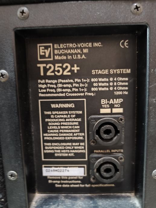 Electrovoice T252+ , zvučnici 3-way, 2*15" + driver. System bass + midbass + driver 800/1600w svaka kutija