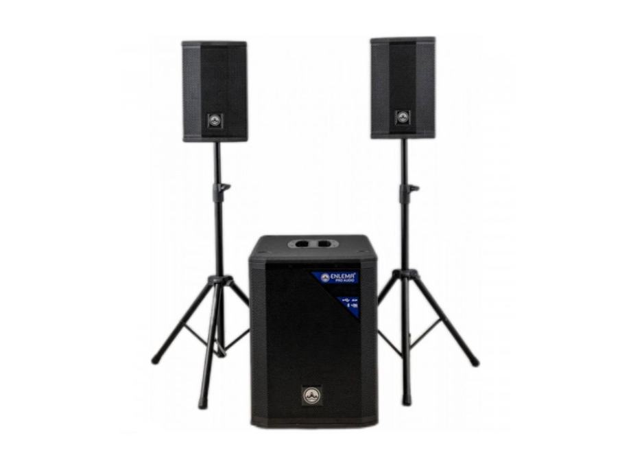 Enlema APS1000DSP PA system with DSP; sound system 12 “bass + 2 satellites (6.5 + 1” hf), 800 w amplifier – mono, DSP (for live, speech, dj, music), crossover, delay line, 3 band eq, bluetooth, 2 x line/ mic INPUT,…