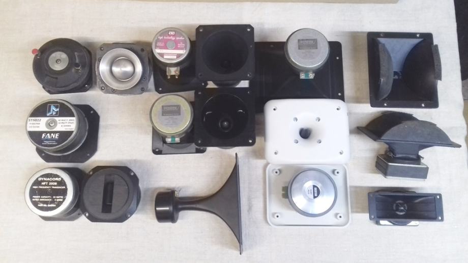 Profesionalni zvučnici, driver, visokotonci, tweeter za ugradnju, skretnice i ostalo. Ostatak nedovršenog projekta. Sve u odličnom stanju.