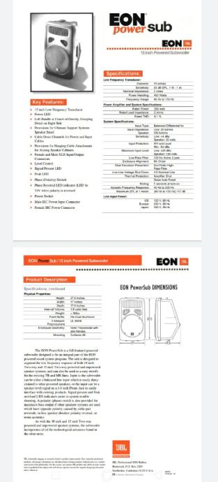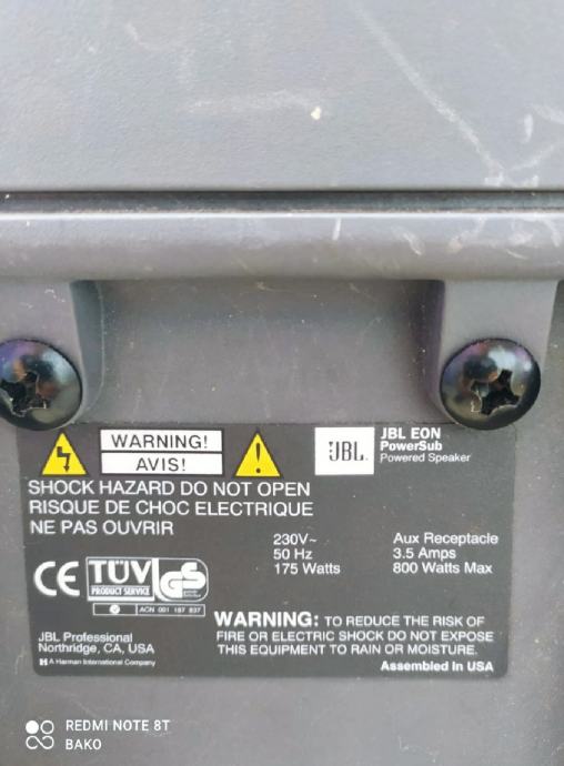 Prodajem JBL EON PowerSub, serija G1, made in USA. Snaga ugrađenog pojačala 250w, a može i sam zvučnik da radi, pasivno, sa nekog drugog pojačala, 400 w, 2 oma.