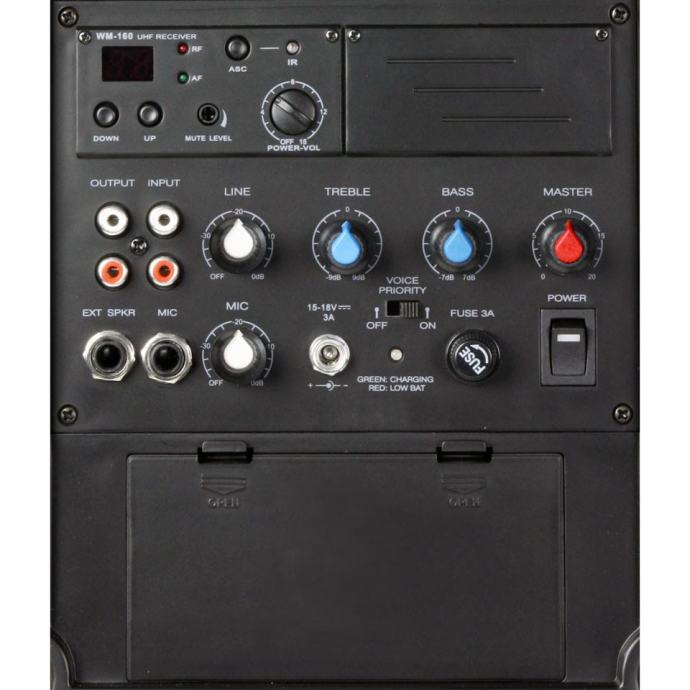 Bass , Line Gain , Master , Mic Gain , Power , Treble , Voice priority on / off