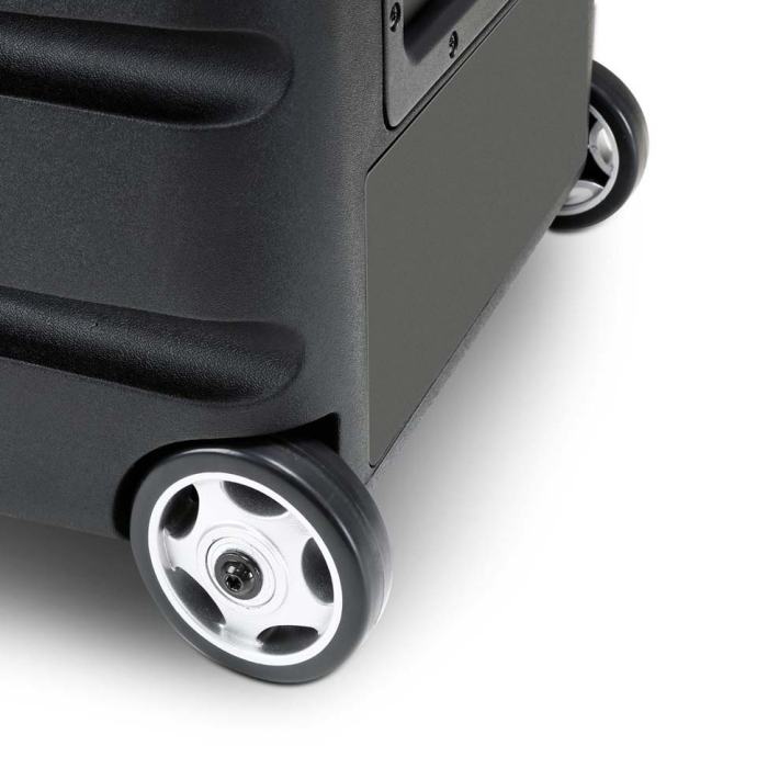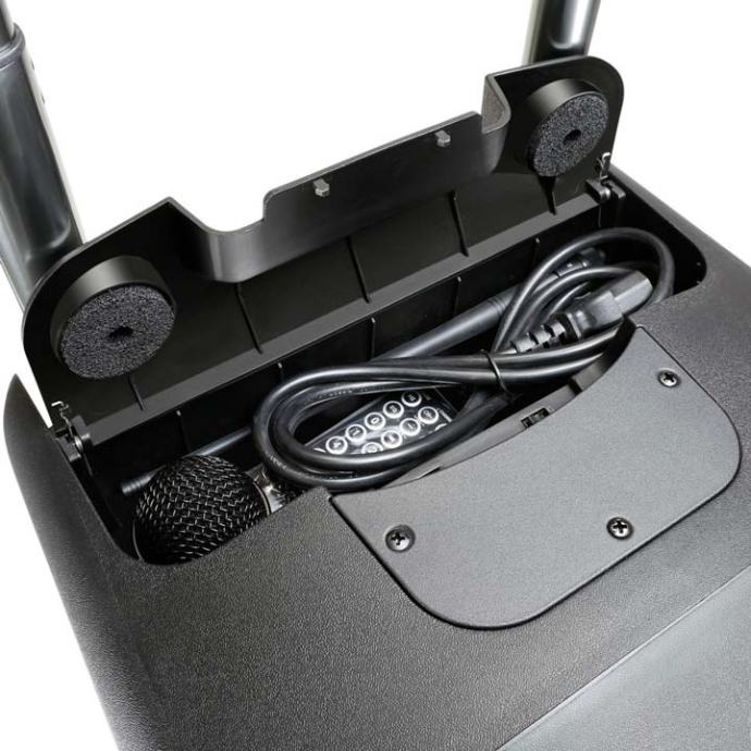 Priloženi ručni bežični mikrofon radi na frekvenciji 655 - 679 MHz, a cijeli sustav ima praktičnu ručku i kotačiće za lakši transport. Idealan je za škole, zabavljače i ulične glazbenike, ali i za govore i prezentacije.