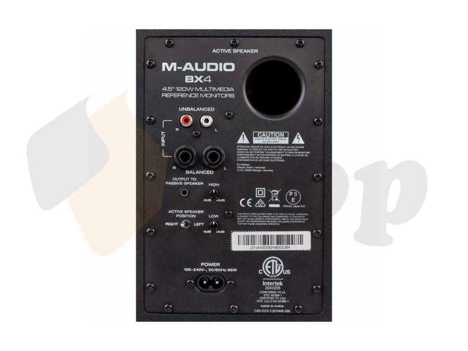 Monitori M-Audio BX4 savršen su izbor! Kompaktni, atraktivni i jednostavni za postavljanje, stolni studijski monitori M-Audio BX4 pedantno su stvoreni za Vas da doživite glazbu kao nikada prije! 4.5” Black Kevlar® niskofrekvencijski driveri; 1” prirodni svileni visokotonci, snaga 2x25W (120W Peak).