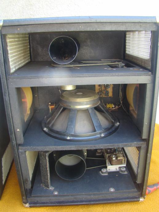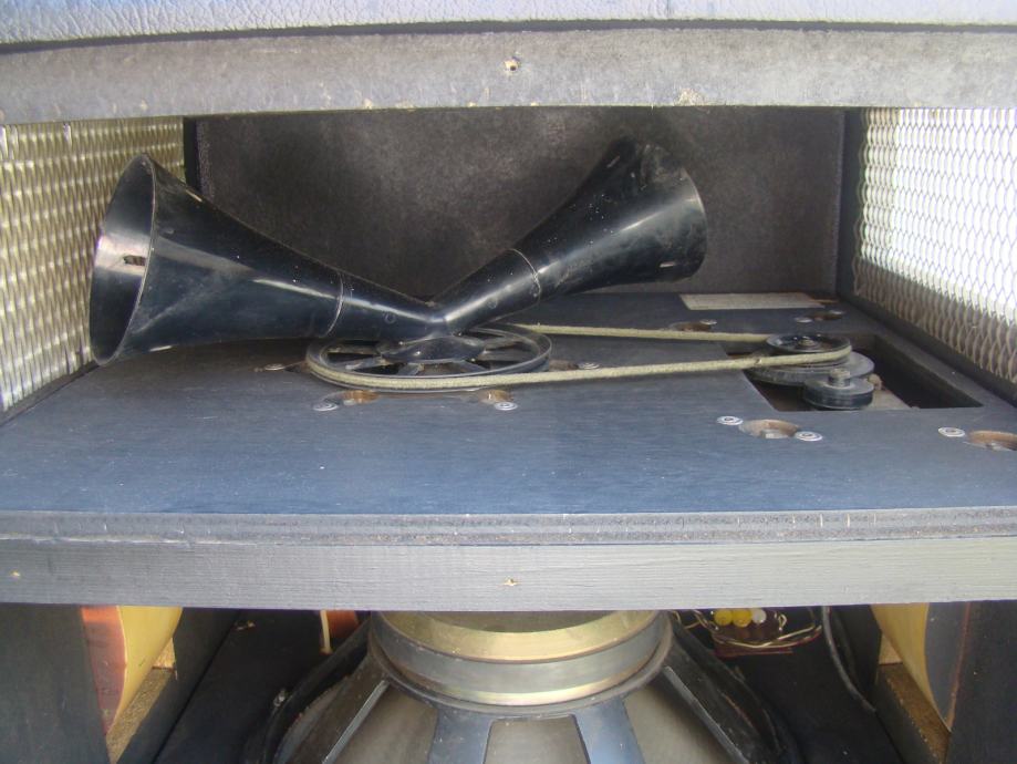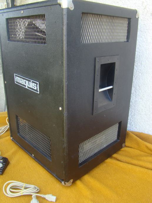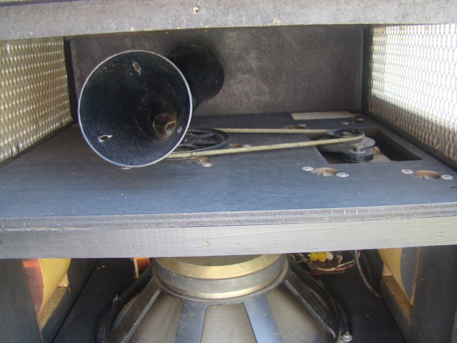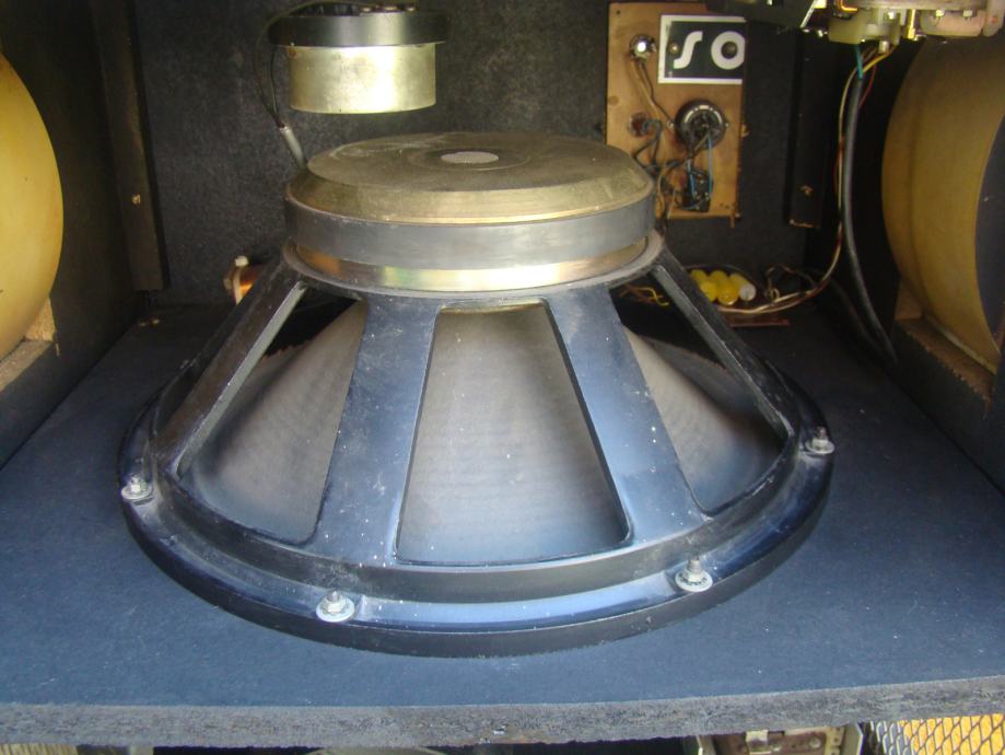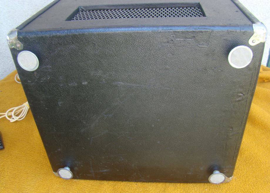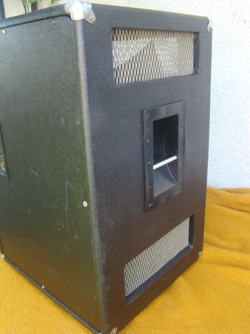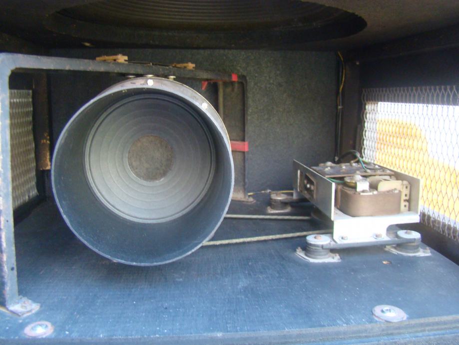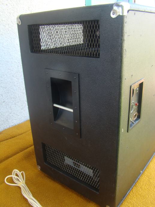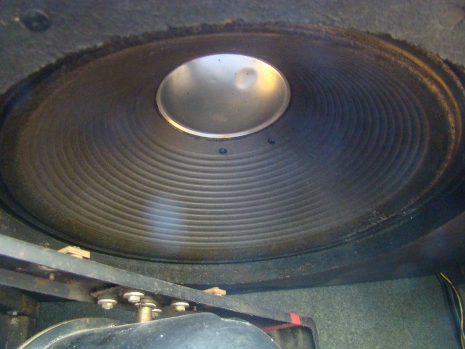 Svi zvućnici u kutiji ispravni, bas 15 inča. Trebalo bi promijeniti gumu prijenosa od starosti je ispucala i otvrdnjela, vidljivo na jednoj od slika. Vrti zvučnike ali teže i bučnije. Skaj bi trebalo promijeniti oštećen je na previše mjesta. odozdola bi trebao imati metalne kotaće ali su stavljene plastićne nogice tek toliko. Većina šerafa koji drže prednju i zadnju ploču fali. U svakom slučaju trebalo bi ga generalno urediti.