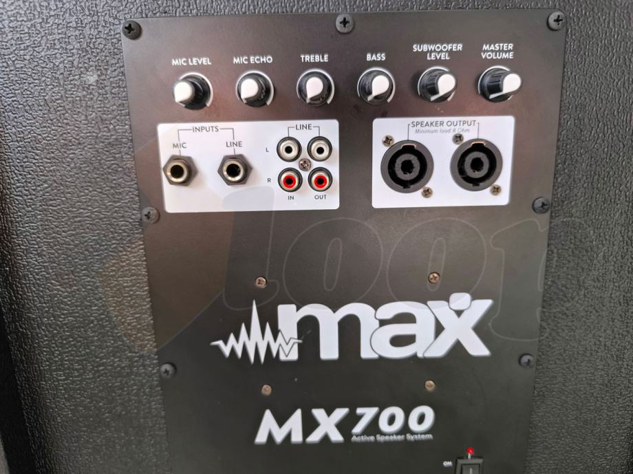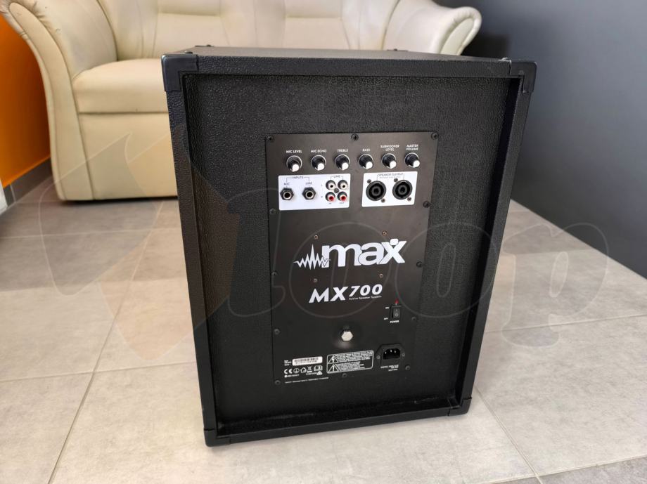aktivni razglas koji se sastoji od bas zvučnika od 400 W s pojačalom i dva srednje-visokotonska satelita od 150 W. MX700 set je prikladan za mobilne DJ-e, karaoke, prezentacije itd. Dolazi u kompletu sa stalcima za zvučnike i kablovima.